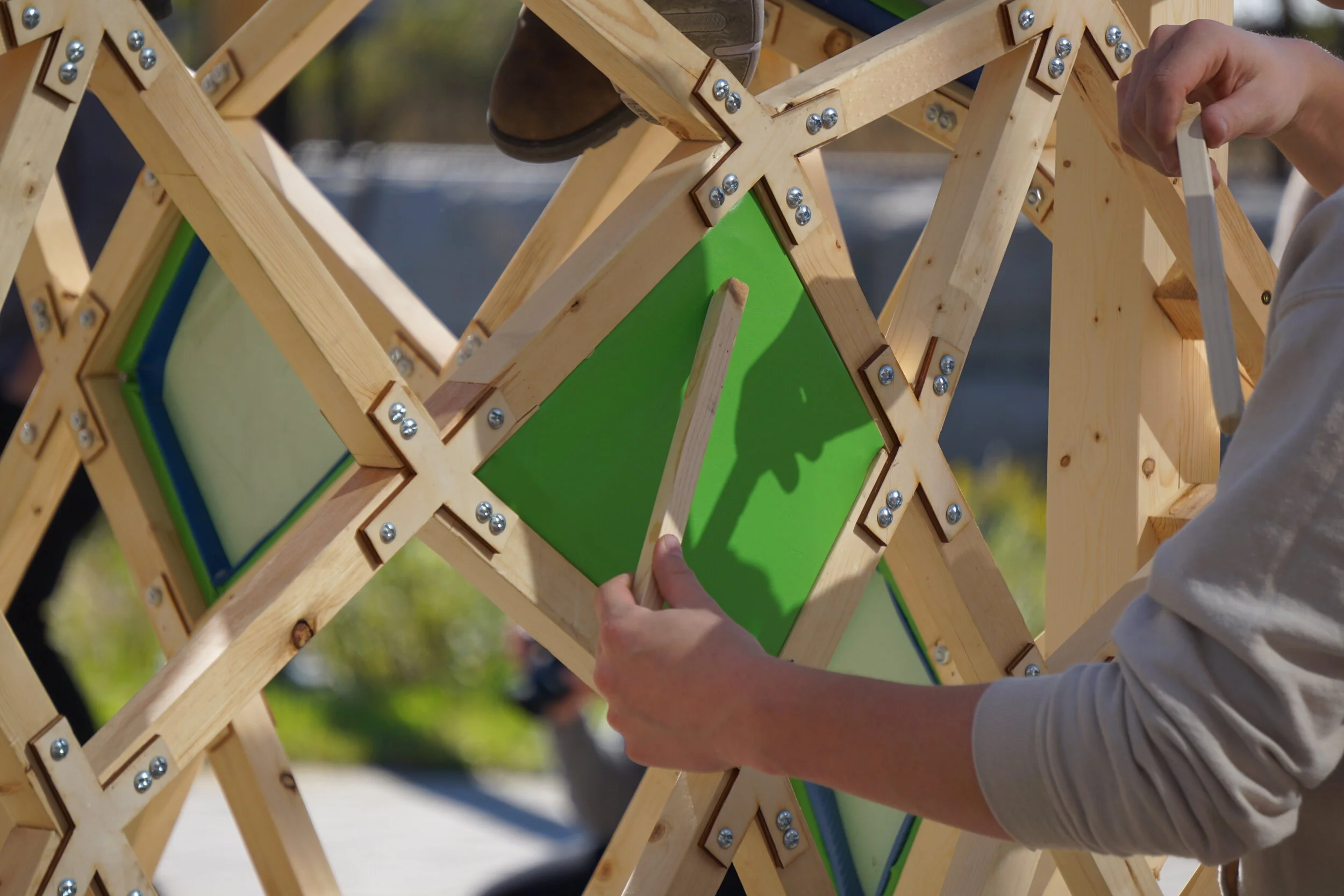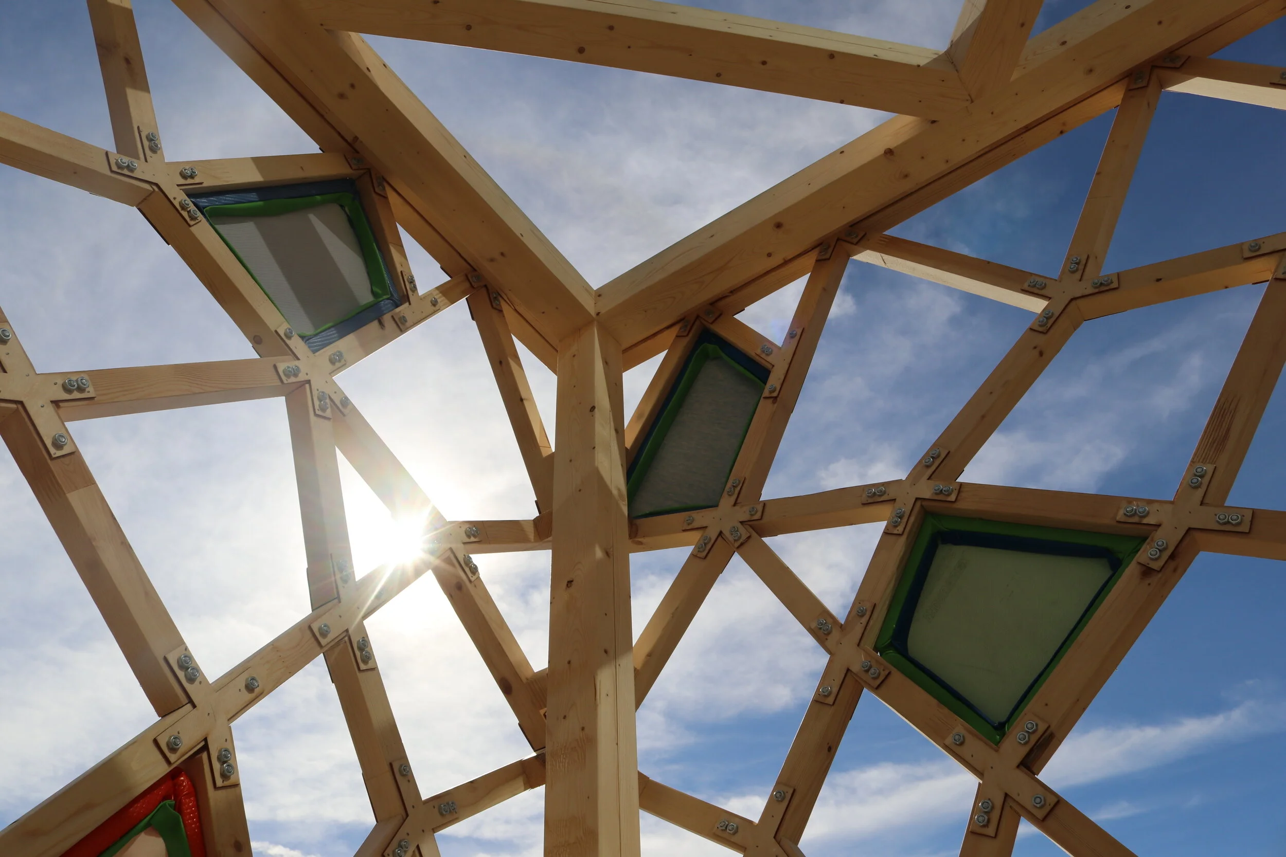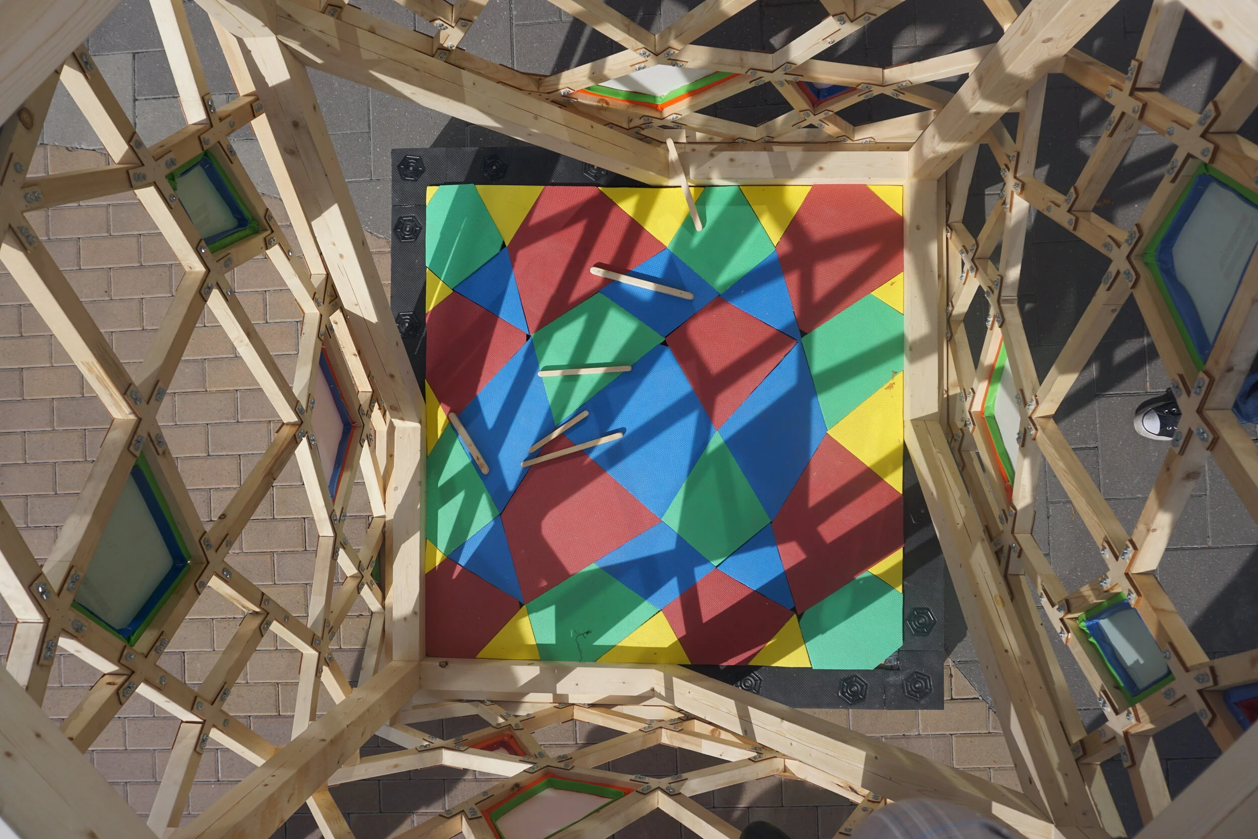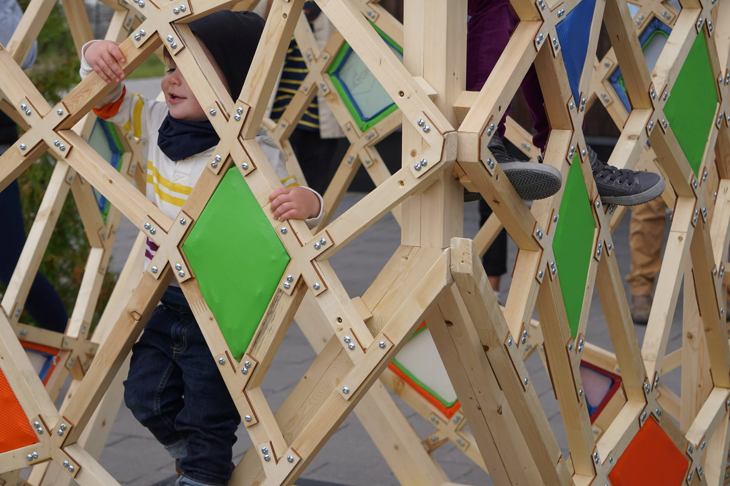 [B.Arch 03] - The aim of Mem.Brain is to create a play space for toddlers that allows maximum interactivity with its user through the structure. The membrane as a whole reveals a colourful exterior using stretched fabric to create a drum skin.